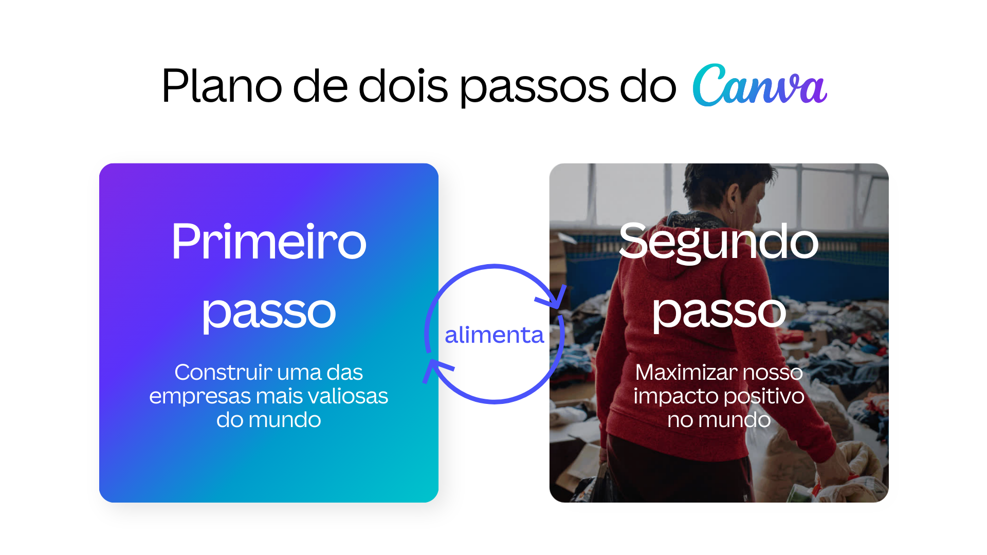 Cada vez que você compartilhou o Canva, você nos ajudou a amplificar nosso impacto positivo. Nada disso teria sido possível sem você. Do fundo dos nossos corações, obrigado por ser uma parte tão importante dessa jornada.