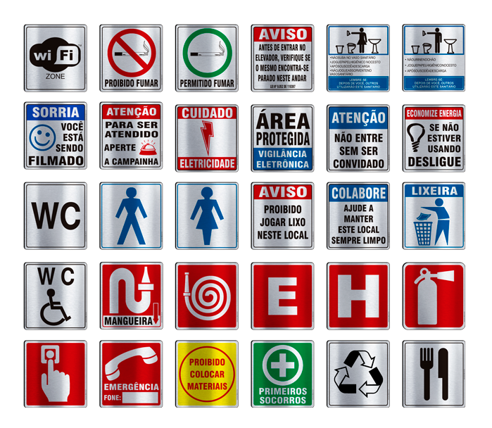 Placas de sinalização – alumínio – 140x150mm