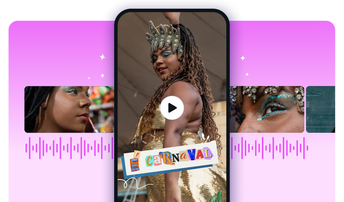 Crie seu vídeo de Carnaval no Canva e compartilhe a folia com todo mundo.